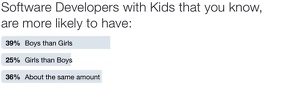 For a while now I had a theory that Software Engineers are more likely to have more boys than girls. I know it sounds like a stupid idea, but I had some strong anecdotal evidence to suggest that I might be onto something.