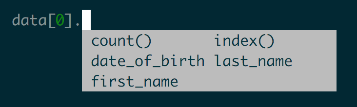 This may seem like a lot of extra work, but for me it’s worth it. I use iPython as my REPL (available via pip install ipython). Dot notation saves me a lot of time by removing the need to type [" "] for every key. In addition, iPython provides a helpful sugestion list after typing . and hitting the tab key.