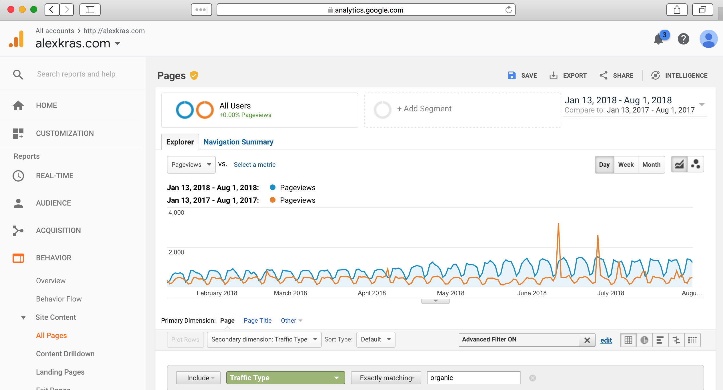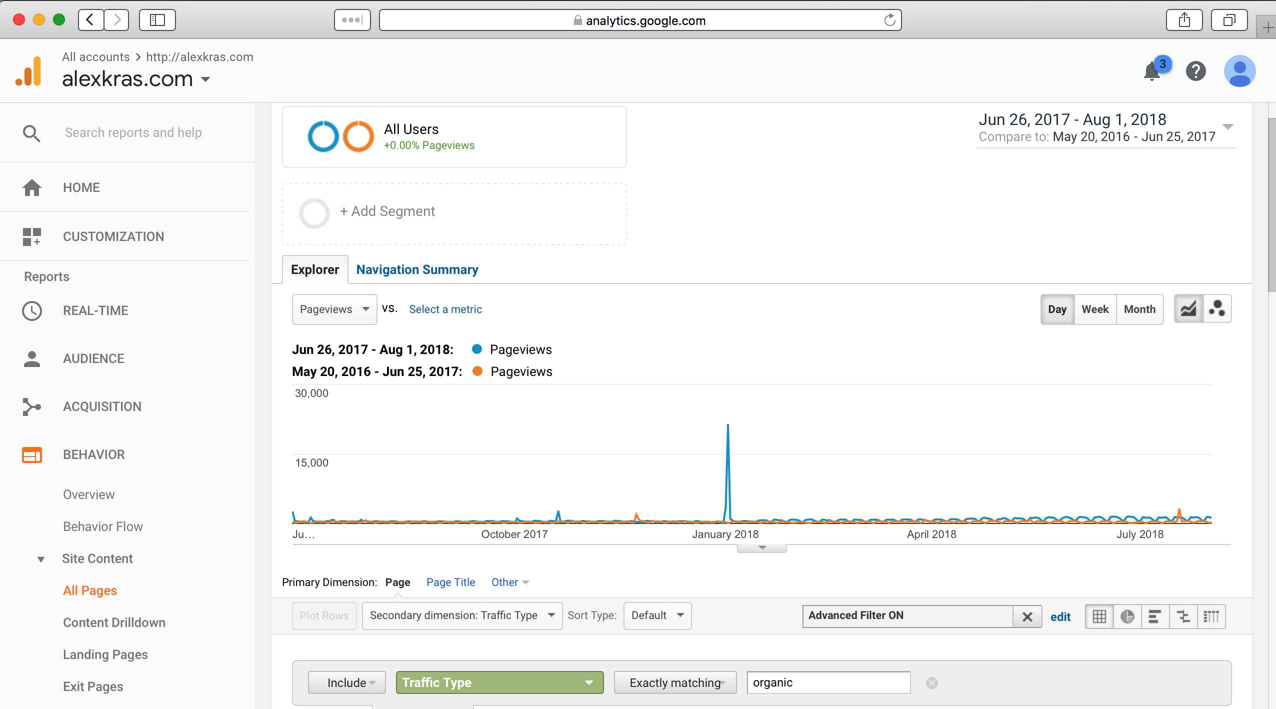The following traffic chart shows that my Google traffic does not look any worse than the traffic from a year before.